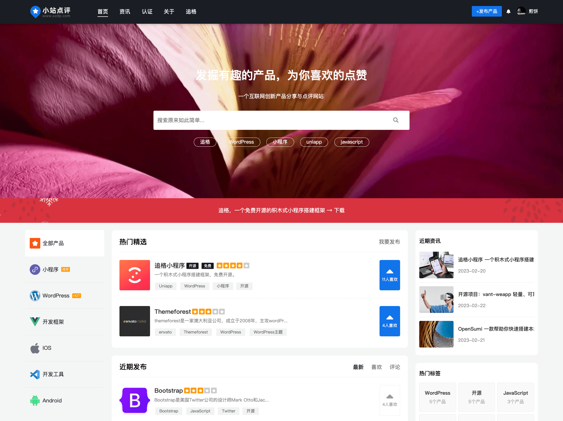 专为企业建站和七月云网络企业官网小程序配套而设计,集新闻动态、留言反馈、产品与服务、公司简介、联系我们等模块,遵循GPL V2.0开源协议发布。