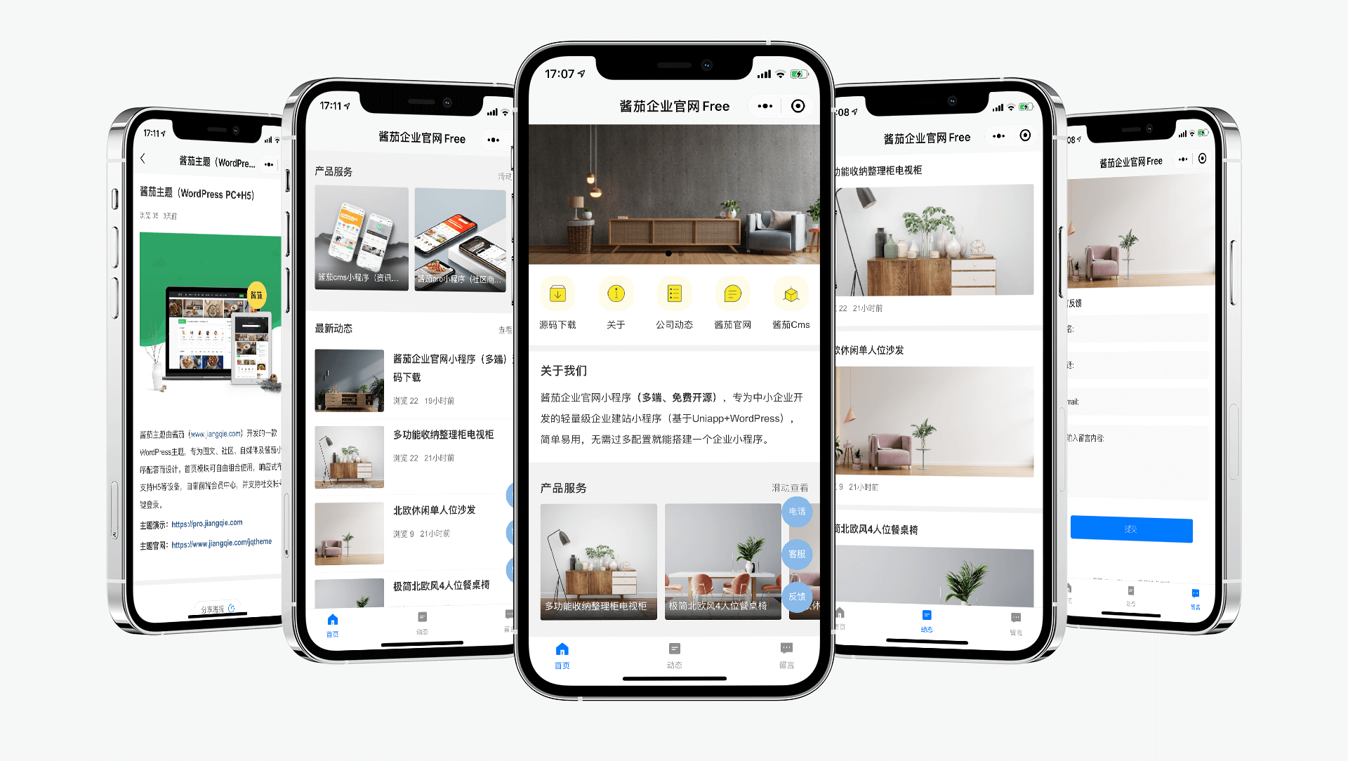 专为企业建站和七月云网络企业官网小程序配套而设计,集新闻动态、留言反馈、产品与服务、公司简介、联系我们等模块,遵循GPL V2.0开源协议发布。